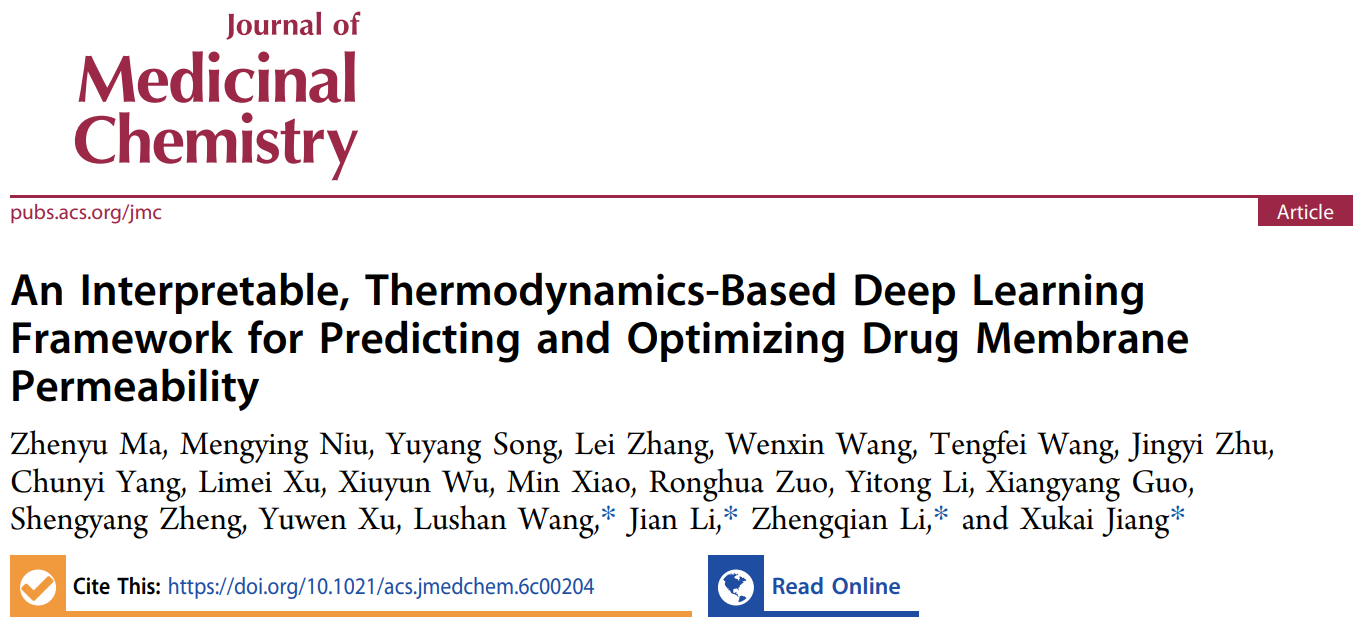 山东大学国家糖工程技术研究中心蒋绪恺团队在Journal of Medicinal Chemistry发表题为An interpretable, thermodynamics-based deep learning framework for predicting and optimizing drug membrane permeability的研究论文,提出了一种兼具可解释性与热力学机制约束的深度学习框架,用于预测并优化药物分子的膜渗透性。该研究将图神经网络与跨膜自由能相结合,不仅提升了模型预测能力,也为药物分子设计提供了更清晰的机制解释。