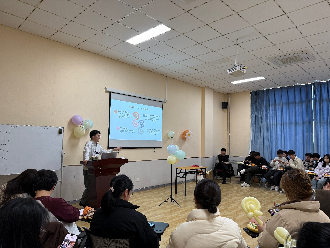 活动伊始,辅导员郭宝石围绕“研究生心理调适与安全成长”主题展开讲解。他结合研究生阶段常见的学业、科研及人际压力,引导学生正确认识心理健康的重要性,学会识别与应对情绪波动,强调在专注科研的同时,更要关注自我身心平衡。他还特别提醒同学们在日常学习生活中注重人身与心理安全,遵守校园管理相关规定。