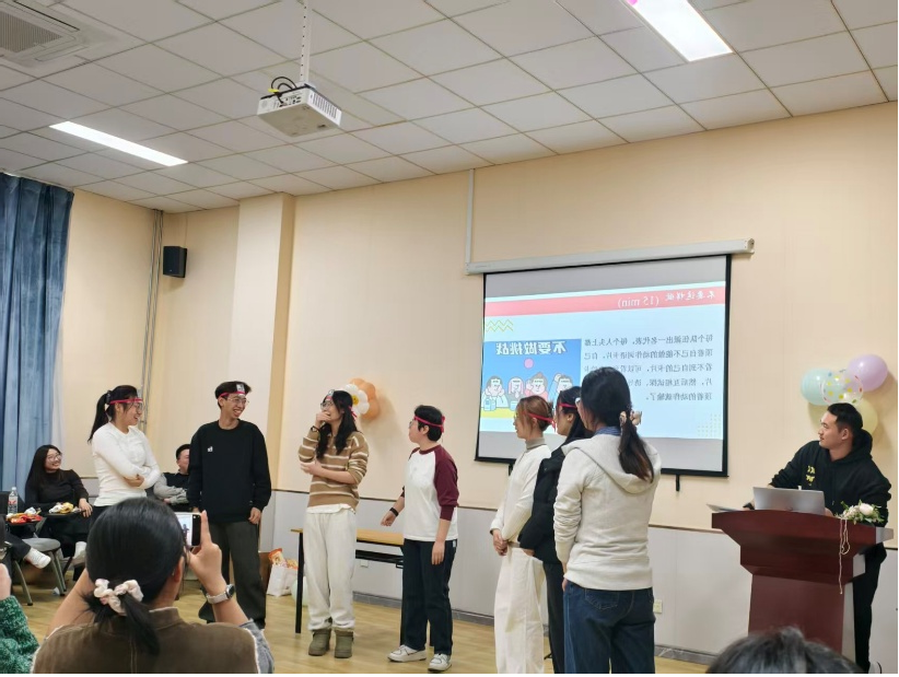 文艺表演环节精彩纷呈,同学们踊跃登场,通过歌曲、相声等表演形式展现青春风采,现场气氛轻松活泼,洋溢着朝气与活力。在集体互动环节,系列活动游戏巧妙融合心理教育与团队训练。“最强大脑”“不要这样做”“达芬奇密码”“看图猜词”等游戏依次开展,同学们在欢乐中锻炼记忆、反应、协作与沟通能力。这些活动不仅迅速拉近了彼此距离,也让大家在互动中学会倾听、配合与情绪调节,实现了“在玩中学、在乐中悟”的心理赋能效果。