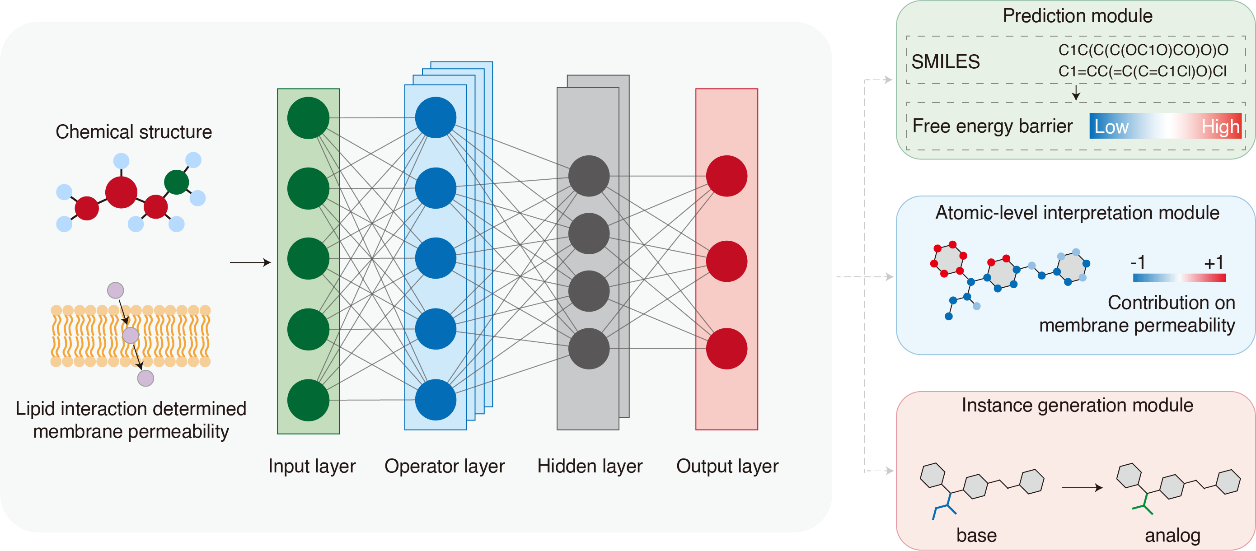 传统方法多依赖经验规则或分子指纹,虽然能够提供一定参考,但往往难以充分刻画复杂的结构—性质关系,且解释能力有限。针对这一问题,研究团队构建了一个基于热力学原理的深度学习框架,将分子跨膜过程中的关键物理量—跨膜自由能引入模型训练,使预测结果更贴近真实跨膜机制。